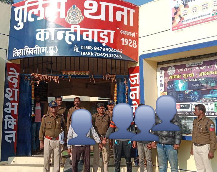 सिवनी यशो:- गत दिवस पुलिस अधीक्षक सुनील कुमार मेहता के द्वारा जारी निर्देशो के पालन में गौकसी करने वाले अपराधियो के विरुद्ध आसूचना संकलन कर सक्त कार्यवाही हेतु प्राप्त मार्गदर्शन व अतिरिक्त पुलिस अधीक्षक गुरुदत्त शर्मा ,अनुविभागीय अधिकारी (पुलिस)केवलारी आशीष भराड़े के निर्देशन में थाना प्रभारी कान्हीवाड़ा निरीक्षक ओमेश्वर ठाकरे के नेतृत्व में उपनिरीक्षक बलवंत सिंह तेकाम,सउनि.प्रेमकुमार परतेती,प्रआर.457 नंदूलाल उईके,आर.732 महेश ठाकरे, आर.724 हिमांचल बड़गैया, आर.488 अंकित चौरसिया, आर.425 संतोष साहु,आर.348 शिवकुमार करपे,सैनिक 39 आनंद हनवत,सैनिक 28 सतीश उईके की टीम द्वारा कार्यवाही करते हुऐ गौमांस से भरी कार क्रमांक MH-49-AT-1139 को घेराबंदी कर पकड़ा गया ।आरोपी चालक रियाज खान पिता अब्दुल रहमान खान जाति मुसलमान उम्र 27 वर्ष निवासी वार्ड नंबर 15 गाँधीवार्ड नया मोहल्ला थाना कोतवाली जिला सिवनी के कब्जे से भारी मात्रा में कुल 01 क्विंटल 60 किलो गौमांस जप्त कर विधिवत कार्यवाही करते हुए,आरोपी चालक रियाज खान से सक्त पूछताछ पर प्राप्त जानकारी अनुसार उक्त गौमांस वाहिद खान व वसीउल्ला अंसारी निवासी ग्राम खैरी ने काटकर तैयार किया था और रैय्यान खान निवासी हड्डी गोदाम सिवनी के ऑर्डर पर डिलेवरी करने ले जा रहा था ।आरोपियो की विधिवत गिरफ्तारी व सूक्ष्मता से कार्यवाही करते हुए घटना के अन्य आरोपियों की कड़ी व प्रकरण का अनुसंधान किया जा रहा है ।