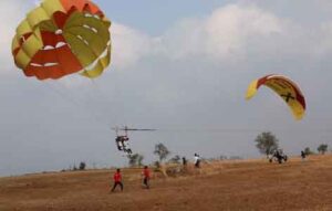 हॉट एयर बलून और पैरा मोटर का लुफ़्त उठा रहे पर्यटक